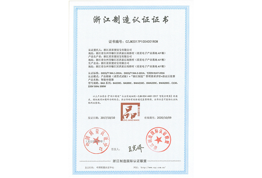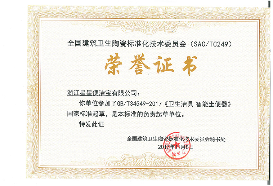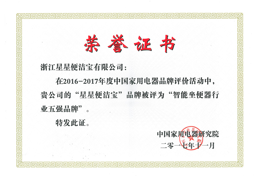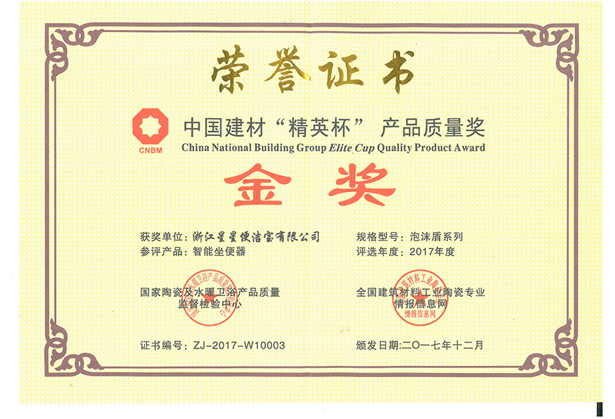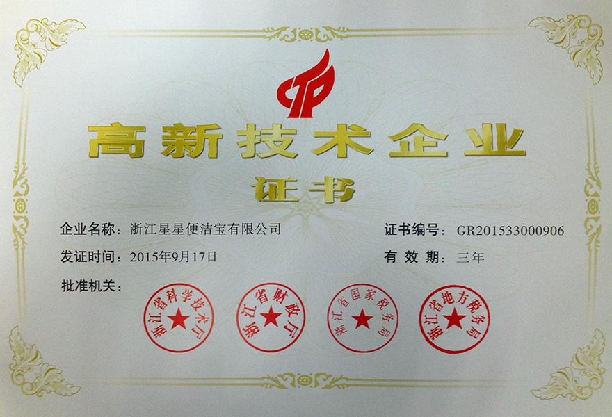 浙江星星便潔寶有限公司成立于1998年,歷經20余年的發展,現已成為國內技術水平領先、產能規模居前,以自主品牌為主的智能馬桶龍頭企業,參與起草了國家、行業、地方的三大產品標準,獲“全國感應潔具十強企業”、智能馬桶“浙江制造”首張認證、“浙江省知名商號”、“浙江省名牌產品”、“紅棉設計獎”、“臺州市政府質量獎”、“紅頂獎提名獎”等榮譽稱號,產品成功入選G20西湖國賓館、中央黨校。