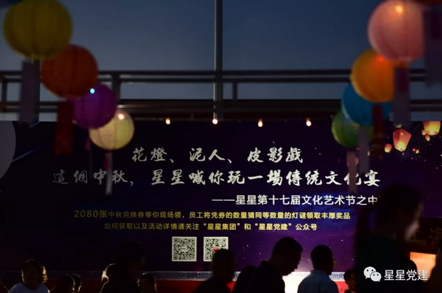 為了積極落實(shí)前階段省委宣傳部王四清部長調(diào)研星星時(shí)提出的關(guān)于文化分眾供給的指示精神,星星第十七屆文化藝術(shù)節(jié)結(jié)合公司當(dāng)前實(shí)際,借中秋這一中國人珍視的傳統(tǒng)節(jié)日,在園區(qū)廣場為廣大員工送上了一場關(guān)乎花燈、泥人、臉譜、皮影戲的傳統(tǒng)文化盛宴。來自集團(tuán)各單位不同層面的員工月下花燈、濟(jì)濟(jì)一堂,共話中秋文化盛宴。