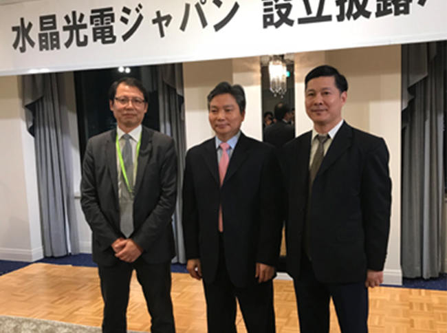 10月12日,水晶光電日本公司成立,在第一酒店東京舉行了盛大的披露晚宴。晚宴出席公司近40家,亞洲市場經理鄒雨華、便潔寶總經理黃朝陽代表星星集團及兄弟公司出席晚宴。合作伙伴日本光馳孫大雄會長、客戶包含相機領域重要客戶AGC、佳能、尼康、索尼、奧林巴斯等,還有主要原輔材料供應廠家JSR、HOYA日東、DISCO等一同參加。