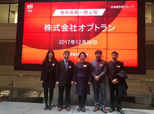 星星旗下浙江水晶光電科技股份有限公司參股子公司日本光馳于2017年12月20日在東京證券交易所上市交易,股票代碼為“6235”。臺州市椒江區委副書記、區長楊玲玲代表臺州市椒江區政府,水晶光電董事長林敏、董事兼副總經理盛永江、財務總監鄭萍、董事會高級顧問羅幸福代表水晶光電,與日本光馳孫大雄會長,林為平社長等人共同出席了日本光馳的上市儀式。