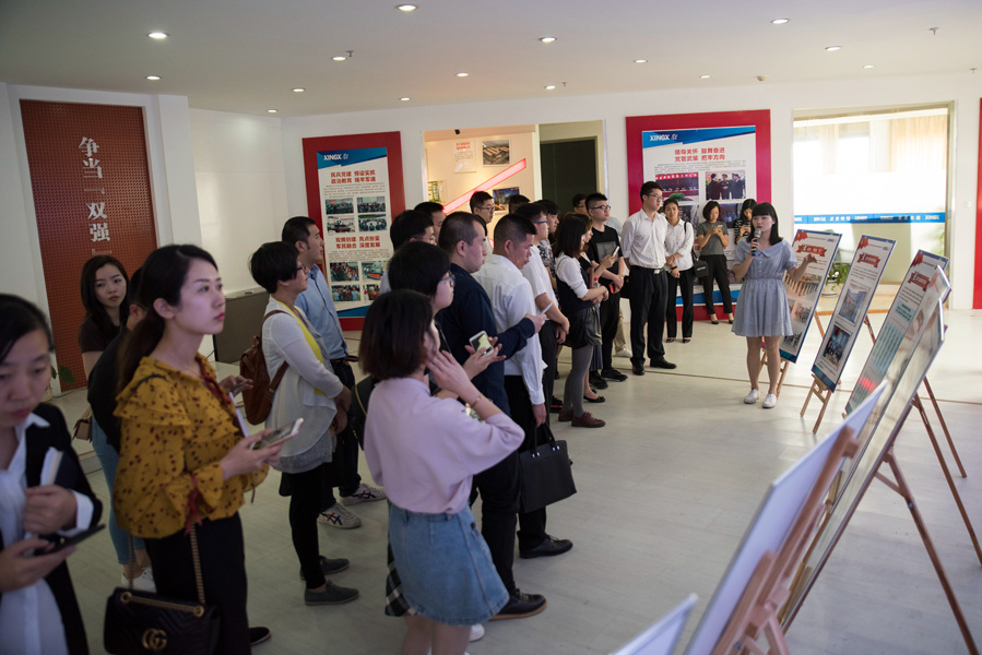 在星星集團團委班子成員的帶領下,觀摩團一行來到了位于集團總部三樓的黨群服務中心,在那里,團委書記羅曉懿向各位代表講述了星星黨建帶團建的各個模塊,并重點跟隨特制展板架,縱向講述了星星團委從1998年的創建到目前所經歷的三個階段及各階段相應的作為,即,1995-1998的前期自發探索與初步創建;1999-2003的中期建立健全組織機制;2004至今的全面參與、系統建設階段;橫向地,她又從培育青年與服務青年兩個維度闡述了十大模塊的建設。